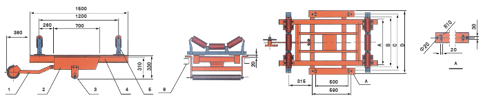 說明:1、測速車及測速傳感器 2、稱重架 3、輔助輥 4、稱重橋 5、原輸送機(jī)托輥改制的計(jì)量托輥 5、輸送機(jī)框架